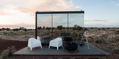 Enjoy this 100 sqft off-grid retreat near the Grand Canyon! Dog-friendly (1 dog, no cats), mirrored exterior, WiFi, heat/AC, coffee, firepit. Approx. 40 min drive to the Grand Canyon.
